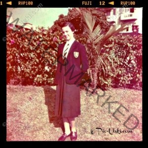 1953 – Lindy in her winter KGV uniform taken at the Police Club after our first leave (Click to enlarge)