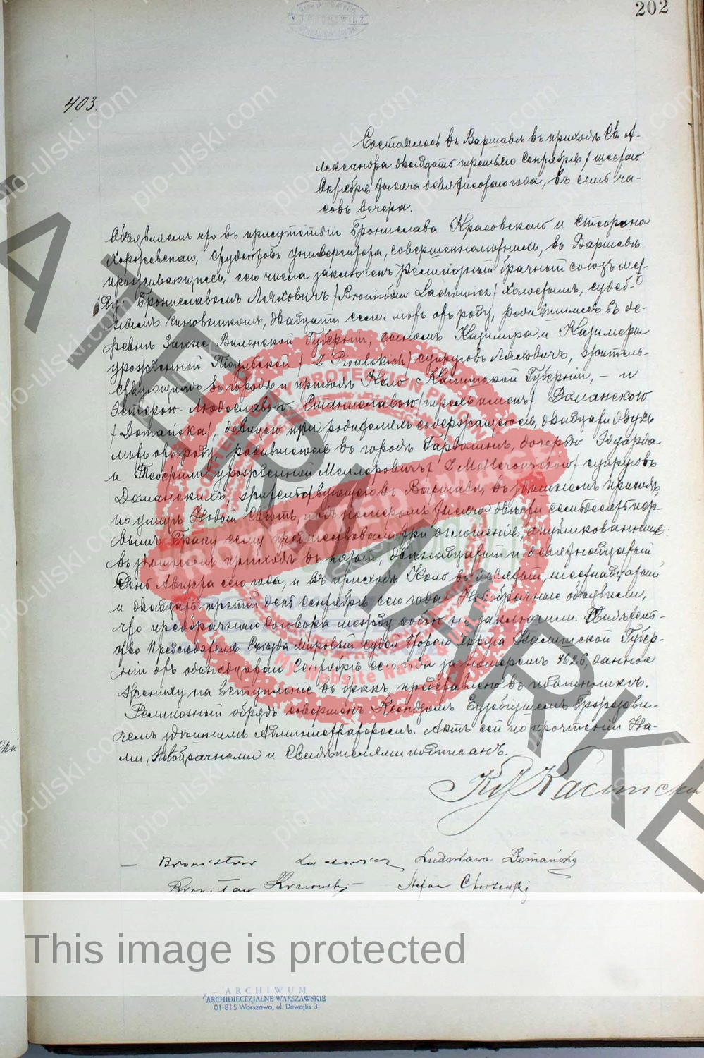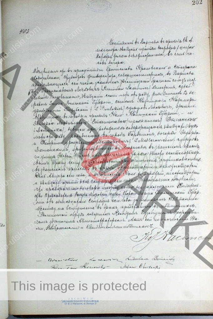 3.) Marriage certificate from a Roman Catholic church of St Aleksander in Warsaw, Poland, (the same church where my family members were married and baptized!!!) for Bronisław Lachowicz and Estera Ludwika Stanisława Domańska. Bronisław (Bronislav) was a son of Kazimierz (Casimir) and Kazimiera (Casimira) Pioulska.