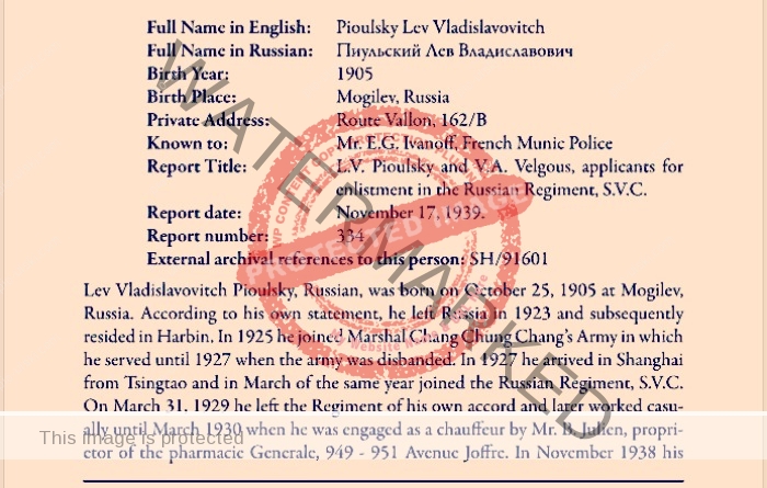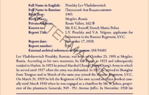 - 1927-1929 Moved from Tsingtao to Shanghai and joined the Russian Regiment, SVC