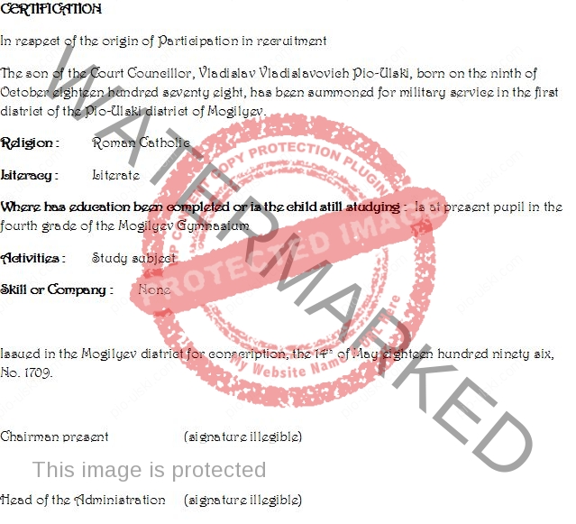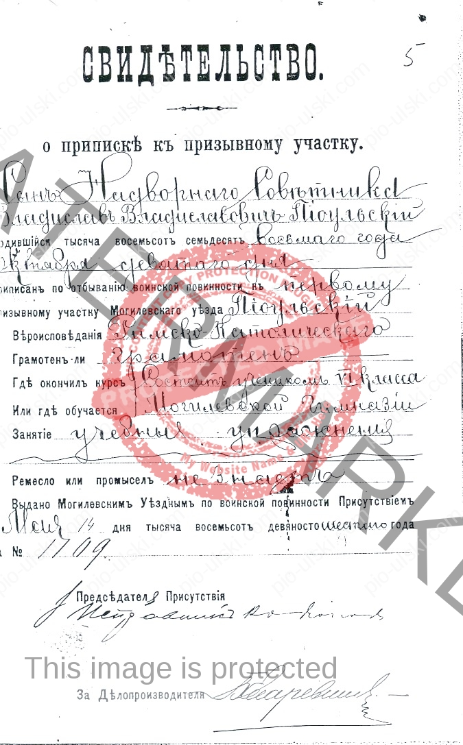 In 1896, the year when Wladyslaw turned 18, he was issued with papers calling him up for service in the Tsar’s military …