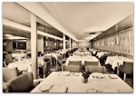 Lloyd Triestino’s VICTORIA was designed by the iconic Gustavo Pulitzer-Finale. Her first class, accommodating 290 passengers, was especially opulent with a beautiful forward-facing lounge paneled in burled woods, a three deck stairtower with Murano crystal balustrade insets, heavy brass and acid-etched glass doors, Arteluce lighting and specially-commissioned artworks, including painted murals, bronze sculptures and wood carvings. Even the tourist class public spaces were richly paneled and pleasantly appointed to accommodate 141 lucky voyagers.