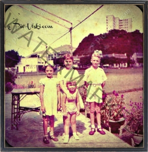 ** … Ah Pah, my amah, had a daughter and we were good friends. Sadly I can’t remember her name but we used to wander down Tin Lok Lane where there was a comic swap place in a doorway to the flats (could even be the doorway behind us in the photo!). Talk about entrepreneurial!! It was a small entrance way and the guy had set up a skinny table in the alcove and we used to go with our old comics, and swap them for new ones! We were the same age but certainly not the same size ?