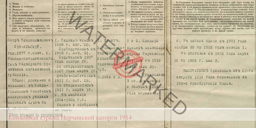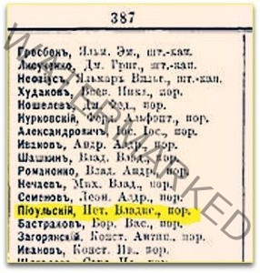 At the same time I was also surprised to find that there was a mention of Petr Vladislavovich Pio-Ulski on a Russian site – Офицеры РИА, which is “the largest open database and photo archive about officers and units of the Imperial Russian Army of the early twentieth century”.