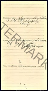 - Second Lieutenant 01/31/1903 – 161st Infantry Regiment of Alexandropol