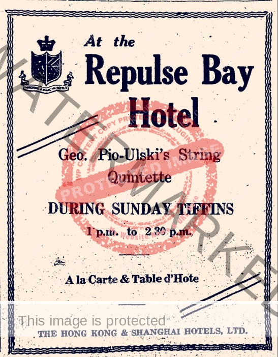 He certainly would have been a very busy man, travelling out to Repulse Bay for tea dances and I guess some weekends, while other weekends he would have been playing at the HK Hotel, the Gloucester or Peninsula, as well as night concerts!