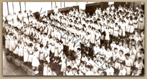 All the first form kids in the above photo have their rattan bags at their feet. I confess I don’t remember us kids having to do that on our first day/days but maybe we did – I cannot remember ?