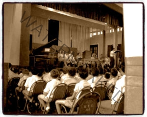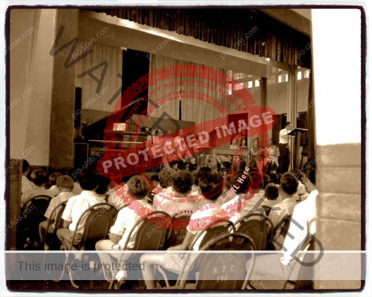 After roll call, we all had to walk single file on the left hand side of the corridor to the Assembly Hall and make our way to the front row where we had to sit on green metal chairs.