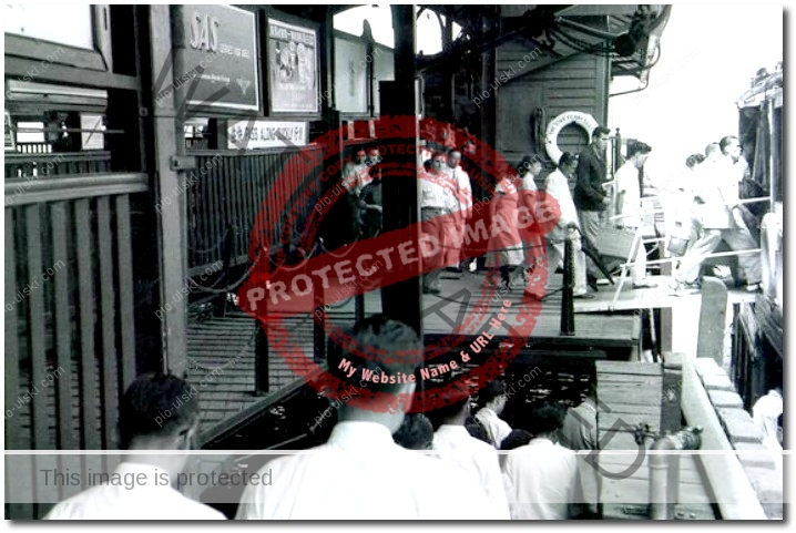 We marched along the pier to get on the Star Ferry. Just to show you how we all boarded, see this photo by (Sir Lawrence) Lord Kadoorie …