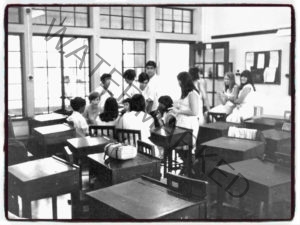 This photo of a classroom was taken after I left, as the uniforms are different, but the desks and the room are exactly the same!