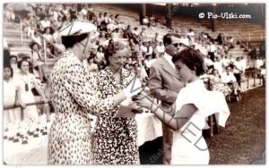 1954 (Click to enlarge) 1956 (Click to enlarge) The left photo shows me being presented with a cup by a lady whose name I don’t remember, if I ever knew it, but the headmistress on the right was Miss Handyside.