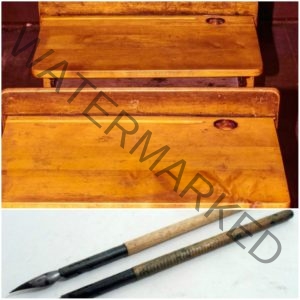 We had ink wells in our desk, which were filled with ink, and wood handled dip pens to practice our writing. We had to make sure that we blotted our copybook so that it was clean and neat as smudges were a no-no!
