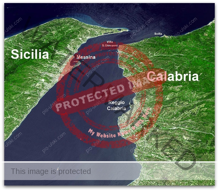 The Strait of Messina, (Stretto di Messina in Italian, Fretum Siculum in Latin, is the channel in the Mediterranean Sea separating Sicily (west) and Italy (east) and linking the Tyrrhenian and Ionian seas. The Strait is 20 miles (32km) long, 2 miles (3km) wide in the north (between Faro Point and the Rock of Scylla), and 10 miles (16km) wide in the south (between Capes Alì and Pellaro); it’s 300 feet (90 m) deep at the northern end.