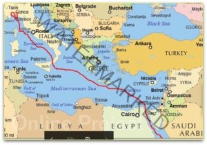 The next day, April 30, the captain showed the passengers around the galley and stores (such excitement ?) after breakfast. Around 1pm the ship got to the “toe” of Italy’s boot and went through the Strait of Messina at 4pm.