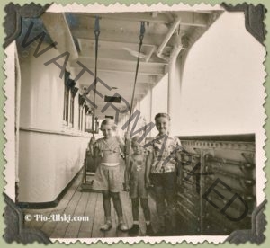 We got back on board the ship at 2:30 and everyone had a snooze, and overslept tea being served. Mr & Mrs Ling and their son came at 4:30 then Gabbi and Willie Keyland came on board with their children. No memory of who those people were but they must have been good friends of my parents as dad made arrangements to catch up with them the next day.