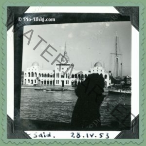 Dad said that Port Said looked like a lovely town – he noted that all the houses were painted dark yellow and there were lots of minarets scattered about. There was an enormously long beach facing the Mediterranean and cute little motor boats buzzing around. He said he was sorry that we weren’t able to go ashore to check the town out.